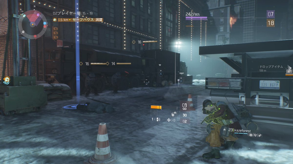 ダークゾーンでは汚染エリアやその他、色のついたポイントで主に敵を倒してドロップを狙いますが、持ち帰るにはヘリでの回収が必要です。